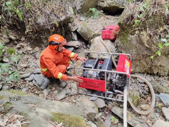 在溪流邊架設水泵