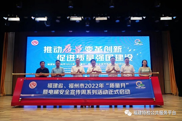 近日,福建省、福州市2022年“質量月”暨電梯安全宣傳周系列活動啟動儀式在福州市鼓樓實驗小學教育集團屏山校區舉行,福建省市場監管局副局長劉先義、福州市市場監管局黨組書記、局長陳宗勝、福建省特檢院黨委書記徐彩軍等出席活動。福州廣播電視臺少兒頻道全程錄播,新浪福建進行了線上直播。