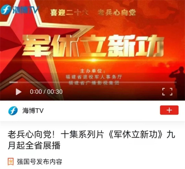 日前,由省退役軍人廳聯合省廣播影視集團精心打造的10集系列紀錄片《軍休立新功》,已在福建新聞頻道、海博TV重要時段完成第一輪的連續展播,不少新媒體網絡平臺也相續轉播,引起熱烈反響。許多觀眾紛紛留言表示,通過電視、互聯網等媒體平臺宣傳軍休干部,讓人們看到軍休干部離軍不離黨的新風采。