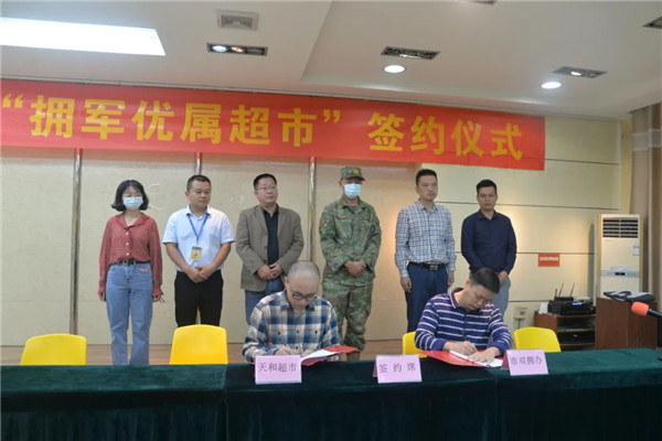 10月21日,賀州市退役軍人事務局與明美天和、泰興連鎖超市、全佰超市、萬家聯華4家超市舉行“擁軍優屬超市”簽約儀式。