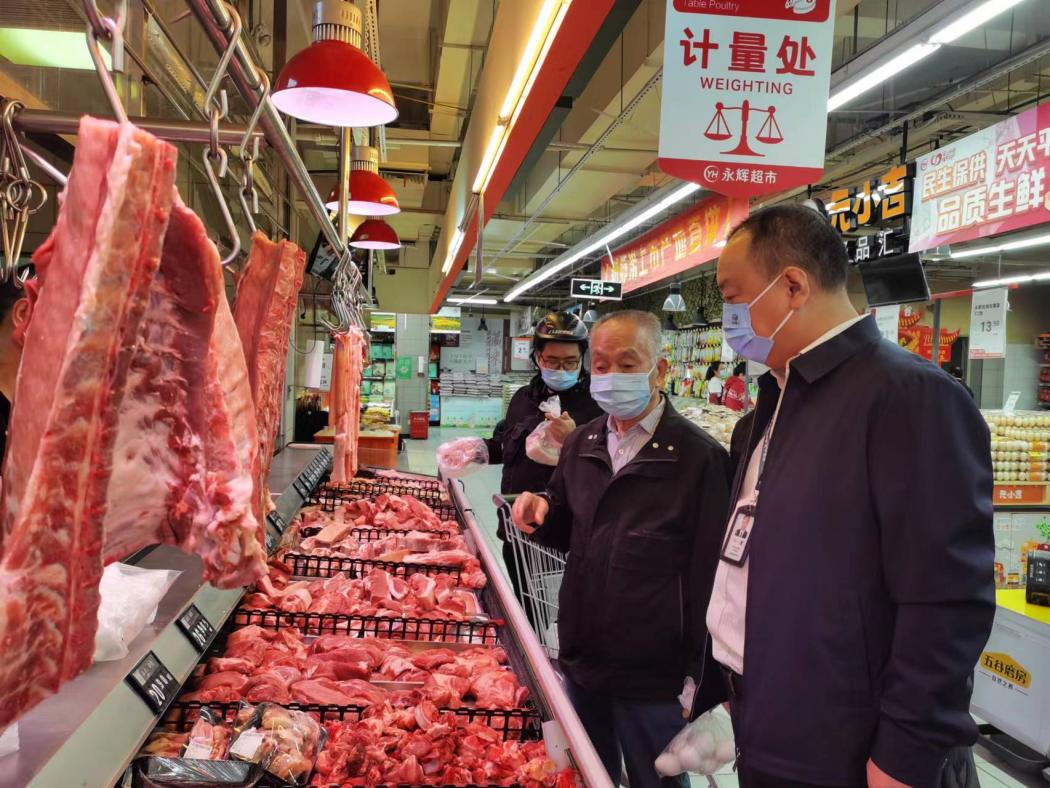 在晉安區永輝超市(華林店),劉小寧組長一行向正在購物的市民、超市工作人員和超市負責人詳細了解青菜、肉蛋奶和水產品等重要民生商品價格情況以及基層市場監管部門履職盡責情況。
