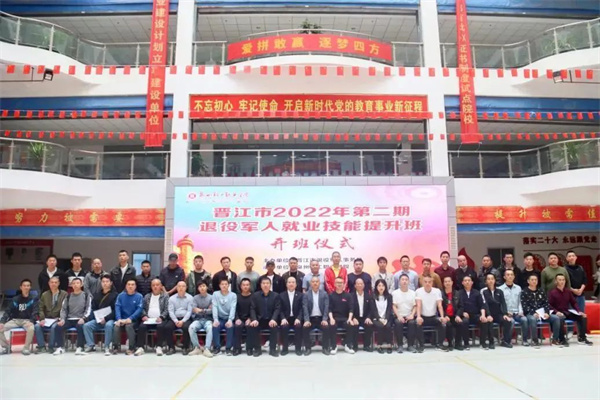 為有效提升退役軍人定向技能,拓寬退役軍人就業渠道,近日,晉江市2022年第二期退役軍人就業技能提升班(電工<中級>)開班儀式在泉州輕工職業學院舉行。共50名退役軍人參加此次培訓。