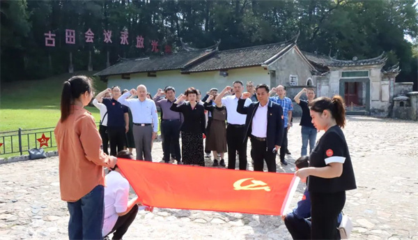 歷史是最好的老師,現場是最好的教材。全體黨員干部瞻仰了毛主席紀念園和古田會議會址,重溫了93年前那場決定中國共產黨和紅軍發展命運的重要會議,感受建黨初期的艱苦歲月。在古田會議會址前,全體黨員面對黨旗,重溫入黨誓詞。隨后,全體黨員干部來到古田鎮退役軍人服務站參觀《永遠的古田軍號——閩西退役軍人事業發展專題展》,深入了解閩西人民對中國革命所做的貢獻和我軍退役軍人服務保障工作的誕生、發展過程,感悟革命先輩們的崇高精神。