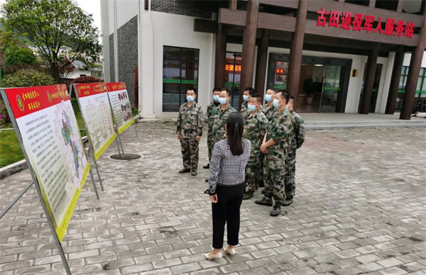 固本強基夯實基礎 退役軍人服務保障工作,是事關國防和軍隊建設、事關軍心民心的大事。 古田鎮黨委、政府始終高度重視退役軍人服務站建設,認真貫徹落實退役軍人保障體系建設“五有”要求,從硬件設施入手,于2020年7月1日啟動古田站建設,并于當年11月25日竣工投入使用。服務站一樓設有服務大廳、老兵書吧、古田軍號講習堂、法律援助室、老兵驛站等。服務大廳主要為本鎮退役軍人提供信息錄入、政策咨詢、法律援助等服務,也可為全國各地的退役軍人到古田參觀學習提供食、住、游等咨詢幫助服務;右邊書吧目前藏書600余冊,可為退役軍人提供閱讀和休閑場所,讓退役軍人在這里感受文化氛圍;服務大廳后面設有古田軍號講習堂,定期為退役軍人黨員開展黨組織活動;檔案室專門存放本鎮退役軍人資料、服務站工作材料,實行“一人一檔”,專人管理。二樓為“永遠的古田軍號——閩西退役軍人工作發展史”展廳,展示了各個時期閩西退役軍人的風采,獨具特色,得到了退役軍人事務部黨組書記、部長裴金佳的高度肯定。 古田站重視退役軍人的思想引領,結合建黨、建軍、國慶等重要節日,組織退役軍人開展重溫入黨誓詞、參觀古田會議會址、瞻仰主席園、參觀廉政建設展館等一系列現場教學活動,使退役軍人“身臨其境”,重溫經典,強化為人民服務的宗旨意識,切實增強黨性觀念,端正工作態度,提振精氣神。
