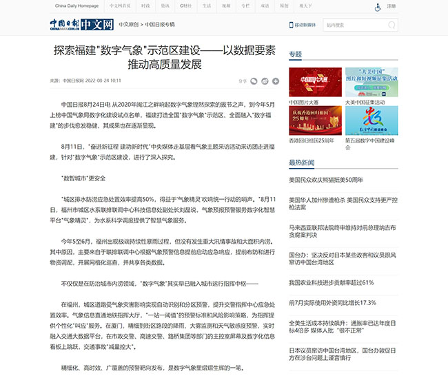 您所在的位置:東南網 > 2022全面學習貫徹黨的二十大精神 奮力推進福建氣象高質量發展 > 央媒看氣象 > 正文