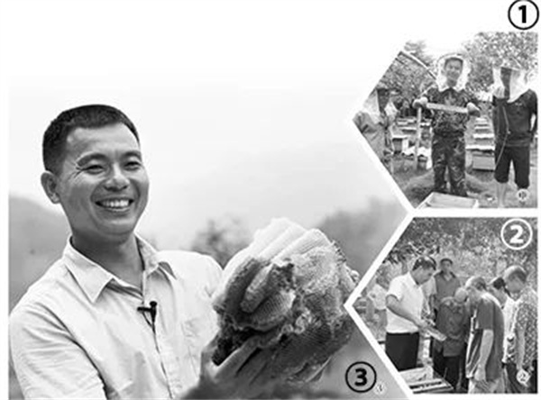 圖①:鐘亮生(中)與合作社成員察看蜜蜂產蜜情況。 圖②:鐘亮生(左一)面向當地農戶開展養蜂技術培訓。 圖③:鐘亮生展示蜂巢 冬日的閩西山區,草木依然蔥蘢。 走進位于福建省龍巖市武平山區的一家林下養蜂基地,一排排蜂箱錯落有致地擺放在樹蔭下。循著“嗡嗡”聲望去,成群的蜜蜂穿梭于花叢間,蜂箱入口處的蜜蜂進進出出。 “眼下,基地氣溫下降到20攝氏度,正是蜜蜂繁殖分蜂、準備越冬的關鍵時期,要定期觀察蜂箱溫度,做好保溫工作……”看著集滿蜂蜜的蜂巢,基地負責人、退役軍人鐘亮生興致勃勃地向筆者回顧他的養蜂之路。 鐘亮生是當地有名的“蜂王”。16年前,鐘亮生抱著“試試看”的心態,從父親手中接過20多只蜂箱。那時的他不曾想到,靠著小小蜜蜂,自己會成就一份“甜蜜的事業”。依托這份“甜蜜的事業”,窮山村換了天地,一方群眾走上幸福路。 “有價值的崗位就有趣味” “黨的二十大報告提出,推動綠色發展,促進人與自然和諧共生……”作為龍巖市“老兵宣講團”成員,黨的二十大召開后,鐘亮生深入當地機關單位和街道社區,結合自己的養蜂創業經歷,宣傳綠色發展理念。 生長于青山綠水間,穿過綠軍裝,退役后自主創業發展綠色養殖,在鐘亮生看來,綠色是他人生的底色。 1993年,18歲的鐘亮生做出“影響自己一生”的決定:參軍入伍。新訓結束,他沒有被分到夢寐以求的作戰部隊,而是成為駐江西某部一座倉庫的管理員。 在很多戰友眼中,倉庫管理員的工作枯燥乏味。鐘亮生卻覺得,只要花了心思、用了感情,再平凡的崗位都會有價值,“有價值的崗位就有趣味”。 平日里,鐘亮生沒事就待在倉庫里,識型號、查數量,很快就對保管物資做到“品種清、數量清、質量清、批次清、配套清、文件手續清”。3個月后,當其他戰友每人只管理1個倉庫時,他已經把兩個倉庫打理得井井有條。 不久后,上級看中鐘亮生勤勞踏實,把他調到炊事班。毫無烹飪基礎的他沒有懈怠,從洗菜、切菜、配菜學起,苦練一招一式,提高烹飪技能。 1995年,上級舉辦炊事員大比武,鐘亮生和另外兩名戰友組隊參賽?!暗豆の也皇亲詈玫?,取菜名我也不是最棒的”,賽前準備時,擔心拖團隊后腿的鐘亮生另辟蹊徑,全力以赴提高炒菜速度。比賽時,鐘亮生和戰友們配合默契,一舉奪魁,榮立集體三等功。鐘亮生同時榮立個人三等功。 1998年,鐘亮生退役后回到福建老家,成為武平縣林業局一名護林員。2001年,因當地林業體制改革下崗后,他憑借在部隊練就的好手藝,在縣城開起路邊大排檔。 因為做生意實在,小吃品種多、味道好、分量足,鐘亮生的大排檔吸引了不少顧客。不到3年,幾張桌子的路邊攤擴大為5家店鋪。 見兒子生意紅火,在山間養蜂多年的父親把自家產的蜂蜜拿到店里代銷。那時的鐘亮生沒有想到,幾年后,他會追隨父親的腳步回歸山野,成為一名“甜蜜使者”。 “‘一鍋飯’大家一起吃才香” 早在20世紀80年代,鐘亮生的父親就開始養蜂。那時,由于山林產權歸屬不清,村民靠山吃山,亂砍濫伐現象導致蜜源稀少。盡管父親每天如蜜蜂一樣忙碌,卻只能換來微薄收入。周邊農戶的日子,也大都過得清苦。 2001年,始于“全國林改第一縣”——武平縣的集體林權制度改革,讓鐘亮生離開護林員崗位,也讓他看到養蜂項目的發展前景。 “‘林改’后,山定權、樹定根、人定心,人們護山、養山的積極性高漲,山上樹多了,花也多了?!辩娏辽f,父親原來養一箱蜂每年產8斤土蜂蜜,集體林權制度改革后,產量增加到20多斤,拿到店里銷售,廣受顧客歡迎。2006年,鐘亮生從父親手中接過20多只蜂箱,開始嘗試養蜂。從小受父親耳濡目染,加上能吃苦、肯鉆研,不到兩年,鐘亮生的養蜂規模擴大到200箱,成立了養蜂基地。 正當鐘亮生繼續壯大他的“甜蜜事業”,準備大展拳腳之際,一系列打擊接踵而來:2008年,一場突如其來的大雪凍死了基地大部分蜜蜂;次年3月,由于管理疏忽,蜜蜂發生幼蟲病,差點“全軍覆沒”。 “從哪里跌倒,就從哪里爬起來?!辈桓适〉溺娏辽I來各種專業書籍自學,并找機會向福建農林大學的專家們請教。經過不懈嘗試和努力,基地漸漸有了起色,養蜂數量和蜂蜜產量逐年增加,鐘亮生也成為遠近聞名的養蜂能手。 “小小微軀能負重,器器薄翅會乘風?!痹阽娏辽磥?,養蜂事業之所以取得成功,關鍵在于乘“林改”之風。為了讓更多鄉親分享這份甜蜜,2010年,鐘亮生成立了養蜂專業合作社,動員當地生活困難的農戶參加。他不僅通過“合作社+公司+基地+農戶”的管理模式,為蜂農提供保價回收蜂蜜等服務,還起早貪黑奔走于各個蜂場,拿著自編的養殖小冊子,將好不容易摸索出來的經驗傾囊相授。 有親友不理解鐘亮生:“明明可以一家獨大、做大做強,偏要帶著鄉親一起干,你就不怕將來人家和你搶飯吃?”鐘亮生樂呵呵地回應:“當炊事員時我們總說,‘一鍋飯’大家一起吃才香!” 隨著合作社養蜂規模越來越大,鐘亮生將經營項目拓展到蜂蜜加工和銷售領域,創新研發的蜂蜜酒、蜂蜜姜茶、蜂蜜護膚品等衍生產品,受到市場歡迎。如今,鐘亮生打造的蜂蜜品牌輻射帶動全縣建立160多個專業化、規?;B蜂基地,惠及近3000戶農戶。 “用蜂蜜釀出甜蜜生活” 帶領當地農戶養蜂創業的過程中,鐘亮生發現不少殘疾群眾和困難家庭雖有創業意愿,卻拿不出啟動資金。深入了解困難群眾的實際情況后,201