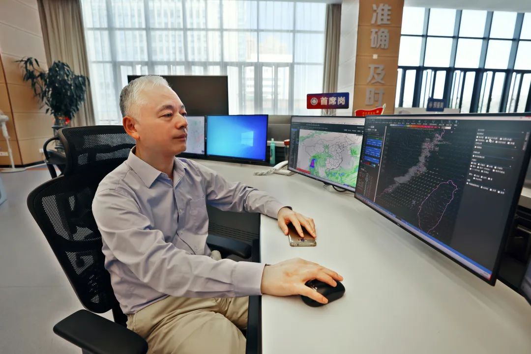雖然只有57歲,但福建省氣象臺副臺長、正高級工程師劉銘已是滿頭銀絲,在預報員中格外顯眼?!皠⑴_天天都在預報大廳忙碌,‘存在感’特別強,”身邊的同事們笑著說,“他的白頭發就是氣象臺的一道風景線?!?/p> 自1987年從山東海洋學院(現中國海洋大學)畢業、參加工作以來,劉銘已經在省氣象臺工作了36年。從預報員到專業臺副臺長、短時臨近預報科科長,再到省氣象臺首席預報員、中國氣象局首席預報員,衣襟染霜華,青絲成白發,劉銘始終兢兢業業,長期深耕預報服務業務,把青春和汗水都獻給了福建氣象事業。 業務專精,技術過硬