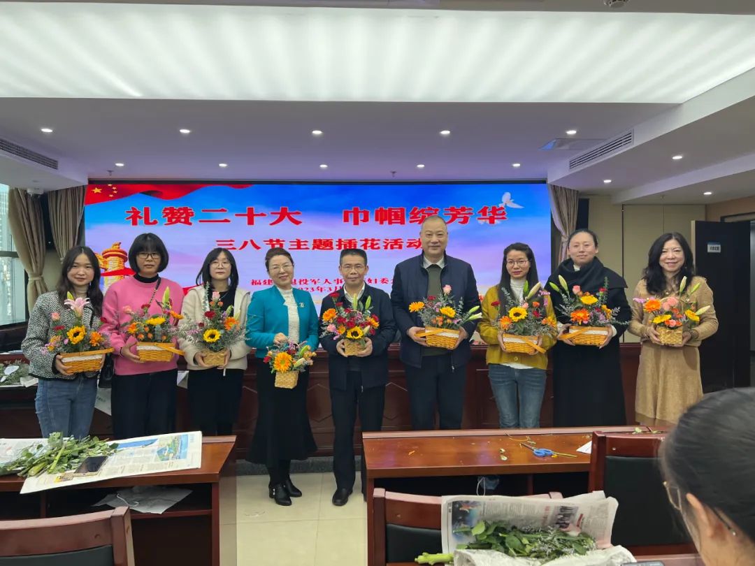 為慶祝第113個國際婦女節,3月7日上午,省退役軍人事務廳機關婦委會開展以“禮贊二十大·巾幗綻芳華”為主題的插花活動,廳黨組成員、副廳長陳建輝,廳二級巡視員陳勇到活動現場,代表廳黨組向女干部職工致以節日祝福和美好祝愿!廳機關和在榕所屬單位全體女干部職工、駐閩某部隊優秀軍嫂代表參加。 陳建輝指出,婦女是經濟建設和社會發展中的一支重要力量,長期以來,廣大軍嫂舍小家顧大家,用女性溫柔的雙手毅然撐起了后方家園,支持著部隊建設;廳機關女干部職工克服各種困難為退役軍人事業發展勤勤懇懇、兢兢業業,作出了突出貢獻。他希望通過插花活動,為廣大女干部職工增進交流、陶冶情操、提升藝術審美情趣搭建平臺,讓大家在感受美、欣賞美、創造美的過程中,充分展現新時代女性風采,激發干事創業熱情,持續為推動我省退役軍人工作高質量發展貢獻半邊天力量。