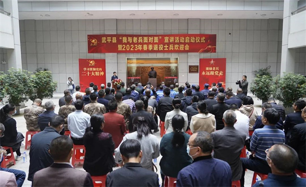 3月21日,中共武平縣委退役軍人事務工作領導小組在劉亞樓將軍紀念館內坪舉行“我與老兵面對面”宣講活動啟動儀式暨2023年春季退役士兵歡迎會。市、縣有關領導,縣直相關單位領導,各鄉鎮(街道)分管領導和退役軍人服務站負責人,2023年春季退役士兵代表、“我與老兵面對面”縣級宣講團成員代表、縣級“最美退役軍人代表”、古田軍號武平縣藍天救援服務中心老兵突擊隊隊員、縣退役軍人事務局機關全體干部等共計100余人參加活動。