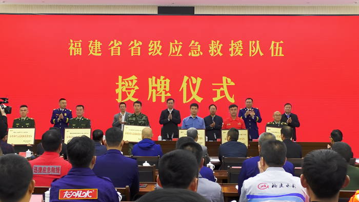 授牌時刻 福建省應急管理廳供圖 據悉,本次儀式共計28支省級應急救援隊伍得到了授牌。 龍巖市煤礦礦山救護隊張金龍隊長告訴記者,本次授牌對應急救援隊伍建設意義重大,不僅能形成眾多隊伍開放交流物資、經驗的平臺,促進共同成長,而且通過省應急管理廳的統籌領導和指揮,紀律更嚴明,更能發揮各個隊伍所長,做到第一時間應急處置精準得當,應急救援有力有效。 “深山飛虎隊”福建省登山協會山地救援隊朱韶明隊長也接受了記者采訪。他興奮地表示能夠加入省級應急救援隊伍與有榮焉,能夠有效促進他們這些民間救援力量發展壯大?!拔覀兠耖g救援隊伍都是一幫來自全國各地的熱心人士自發組成,有政府的指導我們就可以發展得更好更專業,吸收更多有志同行的人加入我們?!?/p> 丘毅指出,組建省級專業救援隊伍是我省應急管理事業發展的一件大事,是積極推動我省應急救援能力提升,統籌推進應急管理事業創新發展的重要舉措。 首批省級應急救援隊伍的組建,標志著我省在打造“統一指揮、專常兼備、反應靈敏、上下聯動”的全省應急救援力量體系建設中又邁出了堅實的一步。