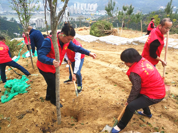 梅埔村位于梅溪鎮東北部,有“中國橄欖第一村”美稱。來到植樹點,漫山遍野的橄欖樹吐露新枝,到處是春意盎然、欣欣向榮的景象。志愿者們熱情高漲,一到現場,就迫不及待地干起活來。大家分工明確,揮鍬、挖坑、搬樹、扶苗、鏟土、填坑、整壟、澆水,相互合作,配合默契,個個干勁十足。經過1個多小時的辛勤勞動,幾十株新栽種的山櫻花、山茶花、石榴樹迎風而立在山頭,煥發出勃勃生機。 活動結束后,志愿者們紛紛表示,參加這次