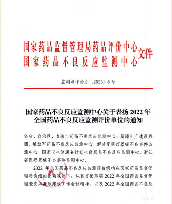 近日,國家藥品不良反應監測中心印發了《關于表揚2022年全國藥品不良反應監測評價單位的通知》,全國65家基層監測機構因在落實監測評價和藥物警戒工作要求以及履職盡責等方面表現突出獲表揚,三明市食品藥品審評與不良反應監測中心榜上有名。