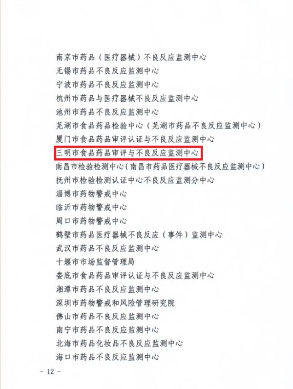 三明市食品藥品審評與不良反應監測中心榮獲全國優秀