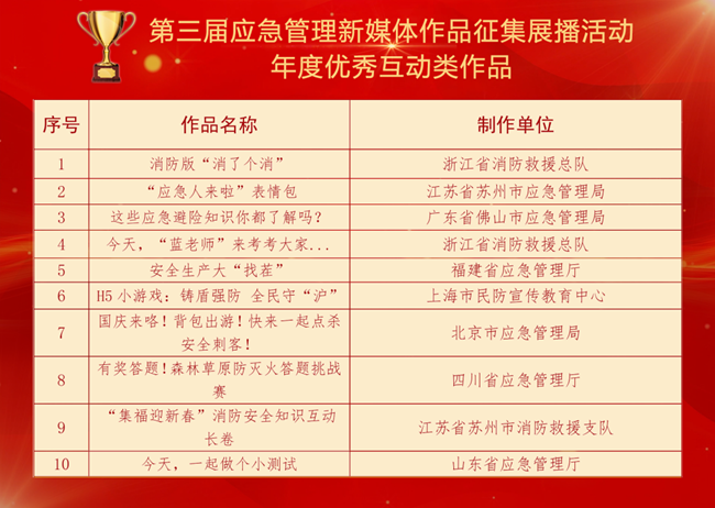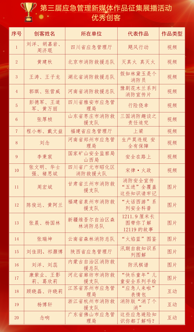 2022年第三屆應急管理新媒體作品征集展播活動獲獎名單公布