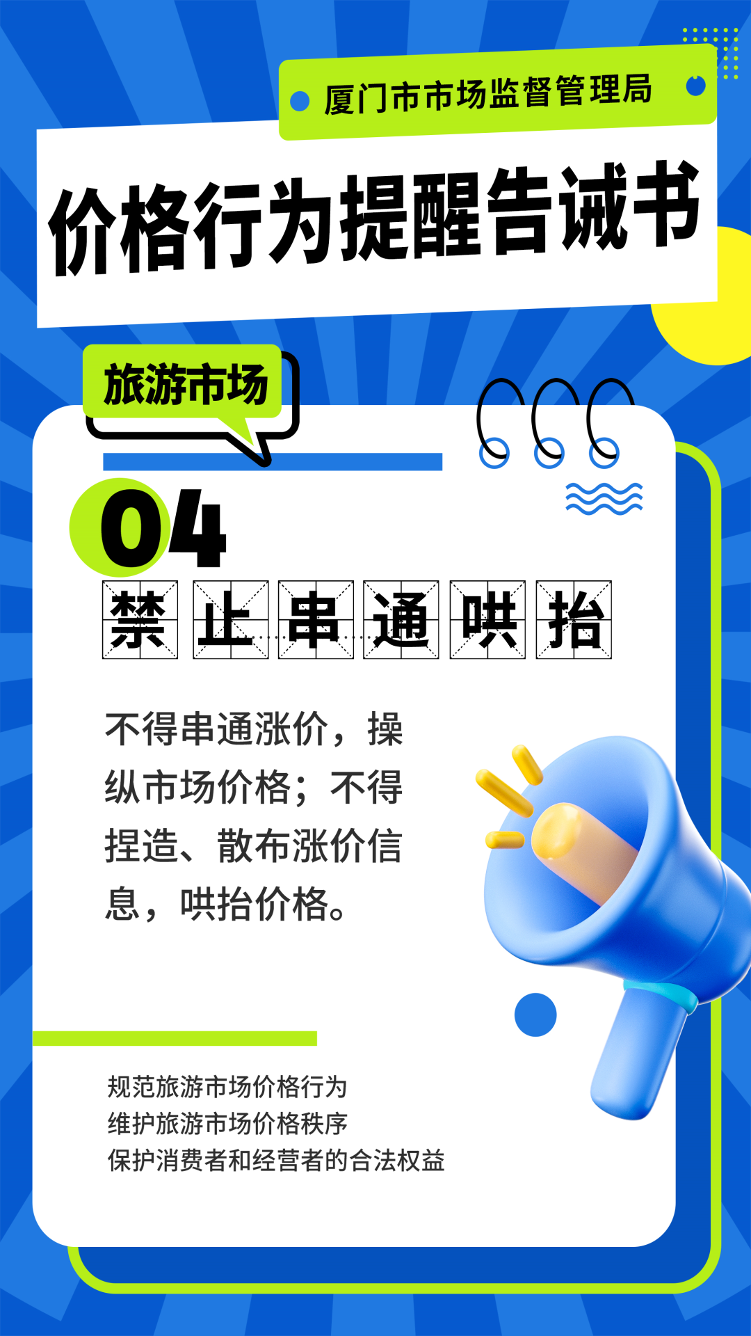 參會酒店、民宿協會和平臺經營者也介紹了近期客房預訂及價格情況,各連鎖酒店假日期間客房價格受供求關系影響有較高幅度上漲,但均能落實明碼標價、誠信經營,平臺企業也表示將落實主體責任,持續關注線上酒店客房價格形勢,及時啟動預警機制,保護好消費者權益。 現場,參會主體現場簽署價格行為合規承諾書,向社會公開承諾嚴格守法經營,做到明碼標價、誠信經營,合理定價,共同維護好廈門市旅游市場價格秩序。 下一步,市市場監管局將進一步加大旅游市場價格監督檢查力度,節日期間持續關注旅游市場價格形勢和投訴舉報情況,安排力量增加檢查頻次,嚴肅查處各類價格違法行為,及時查處和曝光情節嚴重、性質惡劣的典型案例,營造良好旅游消費環境。 |