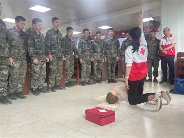 活動中,培訓老師詳細講解了紅十字運動起源、心肺復蘇、AED使用、氣道異物梗阻急救和戰場創傷救護等知識,幫助官兵掌握基礎的應急救護技能。在互動練習中,官兵們學習熱情高、氣氛活躍,與老師互動頻繁,效果明顯。