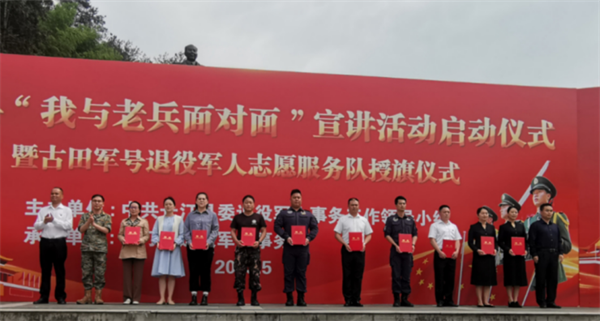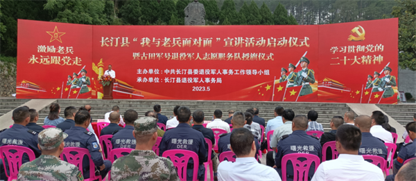 以老兵身份、從老兵視角、用老兵語言,講述新時代退役軍人奮斗故事。5月13日上午,龍巖市長汀縣“我與老兵面對面”宣講活動啟動儀式暨古田軍號退役軍人志愿服務隊授旗儀式,在長汀縣楊成武將軍廣場舉行,活動旨在深入貫徹黨的二十大精神,發揮優秀退役軍人示范教育作用,助推閩西革命老區高質量發展示范區建設。長汀縣政府何毅副縣長,長汀縣人民武裝部馬建剛部長出席儀式,活動由長汀縣退役軍人事務局黨組書記、局長蔡坤高同志主持。