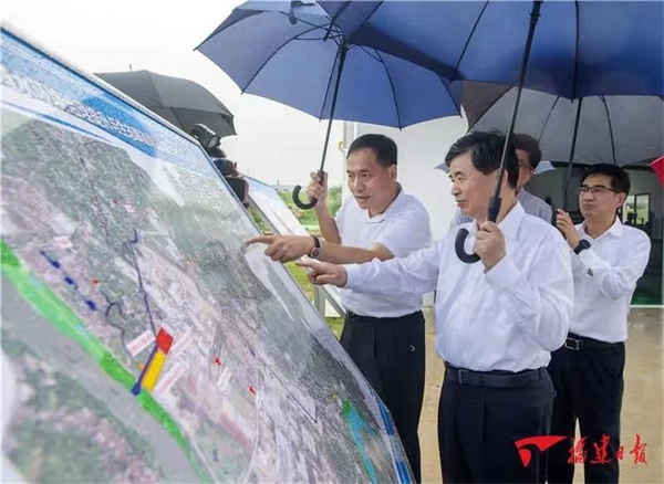 6月8日,周祖翼調研漳州市華安縣銀塘溪水質提升項目。 清溪抱山,鷺飛鷗渡。周祖翼一行沿著九龍江中下游支流,在花果飄香的漳州平原一路北上,沿途了解流域環境綜合整治、農村建設等。周祖翼走進長泰區林墩溪數字指揮中心,詳細聽取九龍江流域概況、河長制落實工作、水環境治理等匯報,并現場察看林墩溪水質情況。了解到當地下決心關停上千家石材加工廠,持續治水,復墾覆綠,周祖翼十分高興,希望他們再接再厲,發揚“龍江精神”,不斷提升水體質量,讓林墩溪成為村里發展特色文旅產業的致富之源。長泰區銀塘辦事處的白石社區,引進花塢里現代農業產業園,發展“農業+旅游、研學、康養”新業態,打造現代農業產業平臺和綜合型度假區。走進園區,隨處可見菠蘿蜜、樹葡萄等果樹,周祖翼認真了解花塢里整治畜禽養殖面源污染、實施生態修復、轉型綠色發展的歷程,在石斛館里與科技特派員交流,詢問當地生態農業、設施農業的發展情況。周祖翼來到薌城區西湖生態園項目,了解九龍江西溪滯洪區環境綜合整治和生態園項目建設介紹,肯定當地創新防洪工程建設和生態環保治理,既增強了防洪能力又改善了內河水質,帶動培育周邊總部經濟、智慧商務等新業態發展。周祖翼希望他們進一步完善配套設施,加快補齊公共服務短板,著力打造宜居宜業的綠色生態城市。