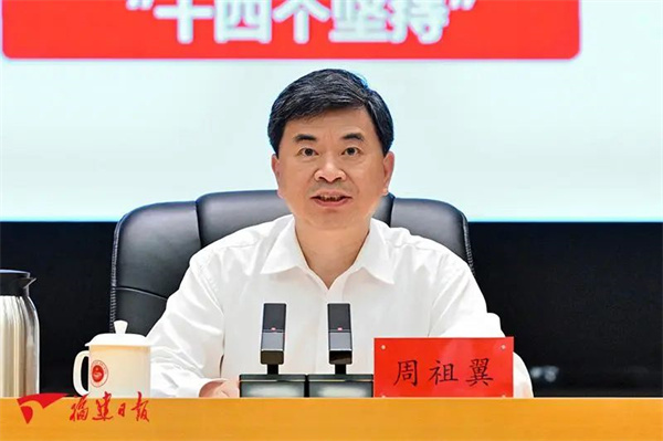6月19日,省委常委會學習貫徹習近平新時代中國特色社會主義思想主題教育第三次讀書班在福州舉行。省委書記、省委主題教育領導小組組長周祖翼在讀書班上專題黨課,他強調,要扎實開展學習貫徹習近平新時代中國特色社會主義思想主題教育,帶著感情學、帶著責任干,自覺做習近平新時代中國特色社會主義思想的堅定信仰者和忠實實踐者,牢記囑托、團結奮斗,推動黨的創新理論在福建轉化為絢麗的實踐圖景、綻放出燦爛的真理光芒。省委副書記、省長趙龍主持。省政協主席滕佳材,以及省委、省人大常委會、省政府、省政協領導,省法院院長、省檢察院檢察長參加。