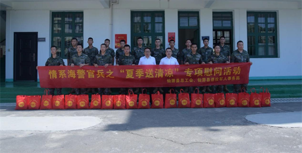 擁軍送清涼,情暖戰士心。慰問組一行先后來到縣人武部、武警仙游中隊、海警莆田大隊仙游工作站開展慰問,詳細了解了部隊的生活、工作情況,感謝官兵們舍小家、顧大家,長期以來為保護人民群眾生命財產安全、服務地方經濟社會建設作出突出的貢獻。