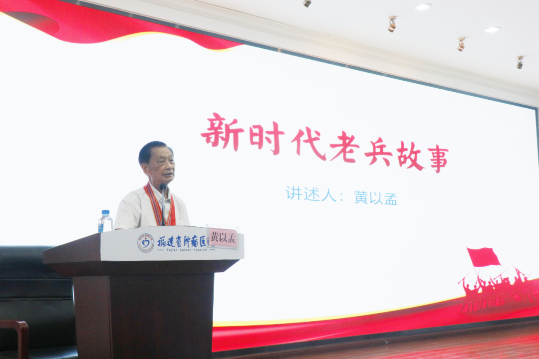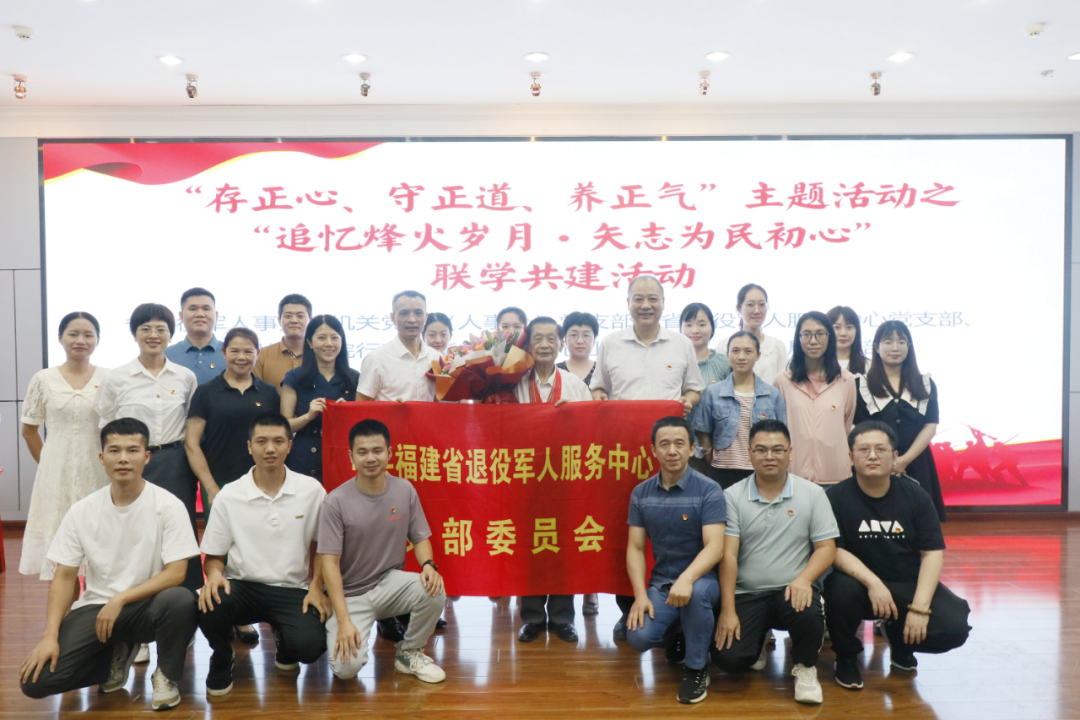 7月26日下午,廳機關黨委(人事處)黨支部聯合省退役軍人服務中心黨支部、省腫瘤醫院行政職能黨總支以及倉山區退役軍人事務局黨支部,在福建省腫瘤醫院學術廳開展“存正心、守正道、養正氣”主題活動之“追憶烽火歲月·矢志為民初心”聯學共建活動,邀請抗美援朝老戰士、福建師大離休教師黃以孟講述新時代老兵故事。省退役軍人事務廳二級巡視員陳勇參加活動。 活動現場,與會黨員干部共同觀看抗美援朝老戰士黃以孟人物故事宣傳片——《信念的腳步》,傾聽黃以孟講述新時代老兵故事,深刻地體會到“報國寸心堅似鐵”的軍人情懷和“老驥伏櫪,志在千里”的奉獻精神。