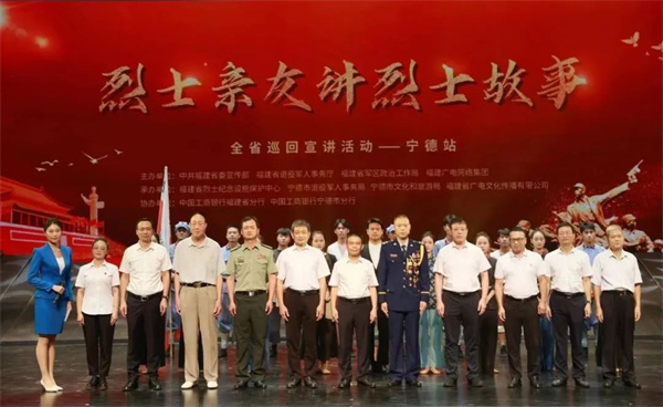 8月30日上午,由中共福建省委宣傳部、福建省退役軍人事務廳、福建省軍區政治工作局、福建廣電網絡集團聯合舉辦的全省“烈士親友講烈士故事”巡回宣講啟動儀式暨首場宣講活動在寧德市藝術館舉辦,省和寧德市軍地有關部門領導,寧德市退役軍人事務局、消防救援支隊、駐寧部隊代表,烈士親友、軍人軍屬及優撫對象代表等近300人現場聆聽。省退役軍人事務廳黨組成員、副廳長陳建輝,寧德市政府黨組成員、副市長包江蘇為啟動儀式致辭。省委宣傳部二級巡視員王辰虎,省軍區政治工作局大校副主任陳永團,省廣電網絡集團黨委委員、副總經理湯玉平等出席活動。 “烈士親友講烈士故事”巡回宣講是今年省退役軍人事務廳深入學習宣傳貫徹黨的二十大精神,扎實推動習近平新時代中國特色社會主義思想主題教育成果轉化的生動實踐。首場宣講活動共邀請6名烈士親友,講述八閩英烈為民族獨立解放、為國家繁榮富強、為百姓守護一方平安作出奉獻和犧牲的感人故事。