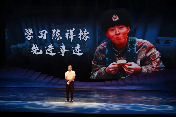 “清澈的愛,只為中國。19歲,原本是最絢爛的年紀,但陳祥榕的生命卻永遠定格了?!逼聊峡h屏城初級中學老師陳臻蘇,用生活的點滴瑣事將其侄子——衛國戍邊烈士陳祥榕清澈而勵志的一生娓娓道來,觸動了現場每一位觀眾。