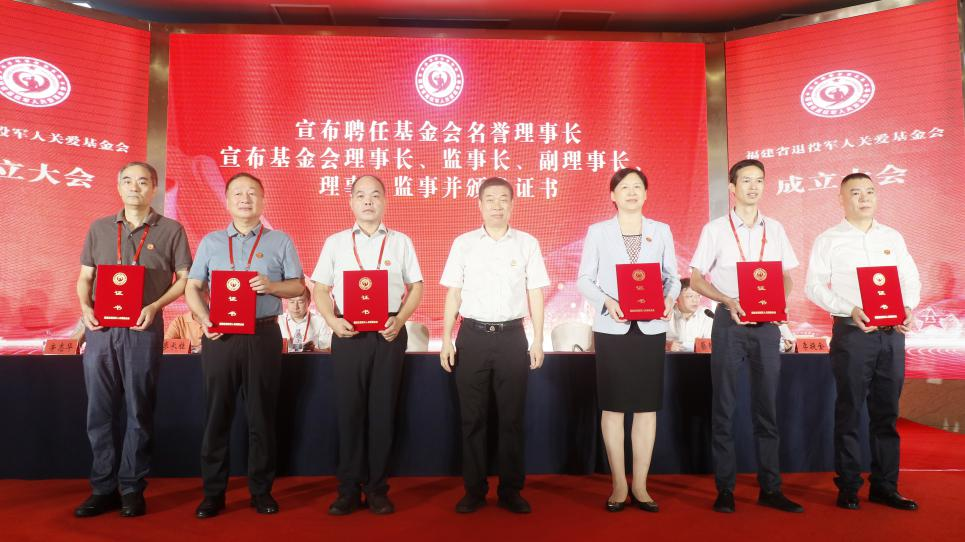 羅慶春傳達了省領導對成立基金會的批示精神。宣讀基金會第一屆名譽理事長、理事長、監事長、副理事長名單并頒發證書。福建圣農集團董事長傅光明為基金會第一屆名譽理事長、鄭敏同志為基金會第一屆理事長、方彥國同志為基金會第一屆監事長。他說,省委、省政府領導高度重視、大力支持基金會成立,省退役軍人事務廳作為基金會主管單位,希望基金會大力弘揚“軍愛民、民擁軍”的光榮傳統,傳承愛心火炬,厚植愛軍情懷;大力推廣實施“精準服務工作法”,創造出更多優質公益品牌新項目,著力解決退役軍人普遍關注的急難愁盼問題,爭取更多有識之士和愛心企業家為基金會獻計出力;健全完善內部運行機制,規范資金管理使用,科學辦事、民主辦事、依法辦事,讓每一份愛心善意都及時精準得到落實,助力全省退役軍人工作高質量發展。