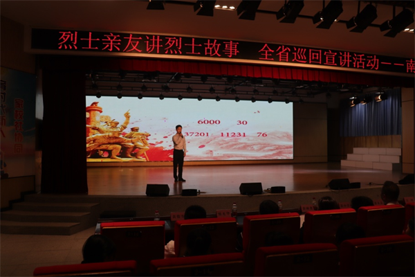 講好黨的故事、革命的故事、英雄的故事,把紅色基因傳承下去。10月16日下午,由省委宣傳部、省退役軍人事務廳、省軍區政治工作局、福建廣電網絡集團聯合主辦的全省“烈士親友講烈士故事”巡回宣講活動走進南平市第一中學武夷校區。省退役軍人事務廳黨組成員、副廳長蔡靜南和省市有關部門領導出席活動。 巡回宣講活動以“傳承紅色基因,激揚奮進力量”為主題,共邀請6名烈士親友參加,講述了八閩英烈保衛國家、保護群眾和舍生忘死的英勇事跡。一個個感人的故事讓在場的老師和學生沉浸在英雄烈士的光輝事跡里,接受著精神的洗禮,深刻地激發著他們愛國的熱情和對民族、國家的社會責任感、歷史使命感。 活動在《致敬八閩英烈》視頻短片中拉開序幕,隨著雄壯的國歌聲響起,全體人員肅立,默哀致敬英烈。