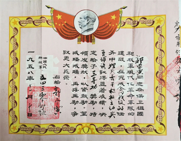 郭學瀛入選的紅色珍藏品《金門戰役三等功獎狀》,彰顯了人民軍隊無畏勇毅、浴血奮戰、視死如歸的軍人本色和革命英雄主義精神。