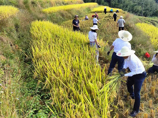 為深入學習貫徹黨的二十大精神和習近平總書記關于保障國家糧食安全的重要論述,充分發揮黨員干部先鋒模范作用,10月30日,省退役軍人事務廳組織有關處室(單位)干部,赴龍巖市上杭縣白砂鎮上早康村開展“我在鄉間有畝田”機關黨員主題黨日暨“我與老兵面對面”宣講活動。 秋收的上早康村,金燦燦的稻穗鋪滿了稻田。在水稻收割現場,黨員干部們在當地村民的細心指導下,頂著秋日的驕陽,卷起袖子, “扎”進稻谷里割稻、搬運、脫粒,體驗水稻收割的快樂和艱辛,臉上掛滿了勞動的汗水和豐收的喜悅。