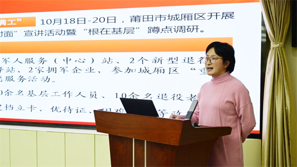 宣講演示員鄭平凡圍繞困難退役軍人幫扶援助主題,為大家宣講了困難幫扶方面的政策法規,她坦言,通過宣講活動,不僅增進了自身業務知識,也增進了與服務對象之間的感情,收獲良多,感觸很大。