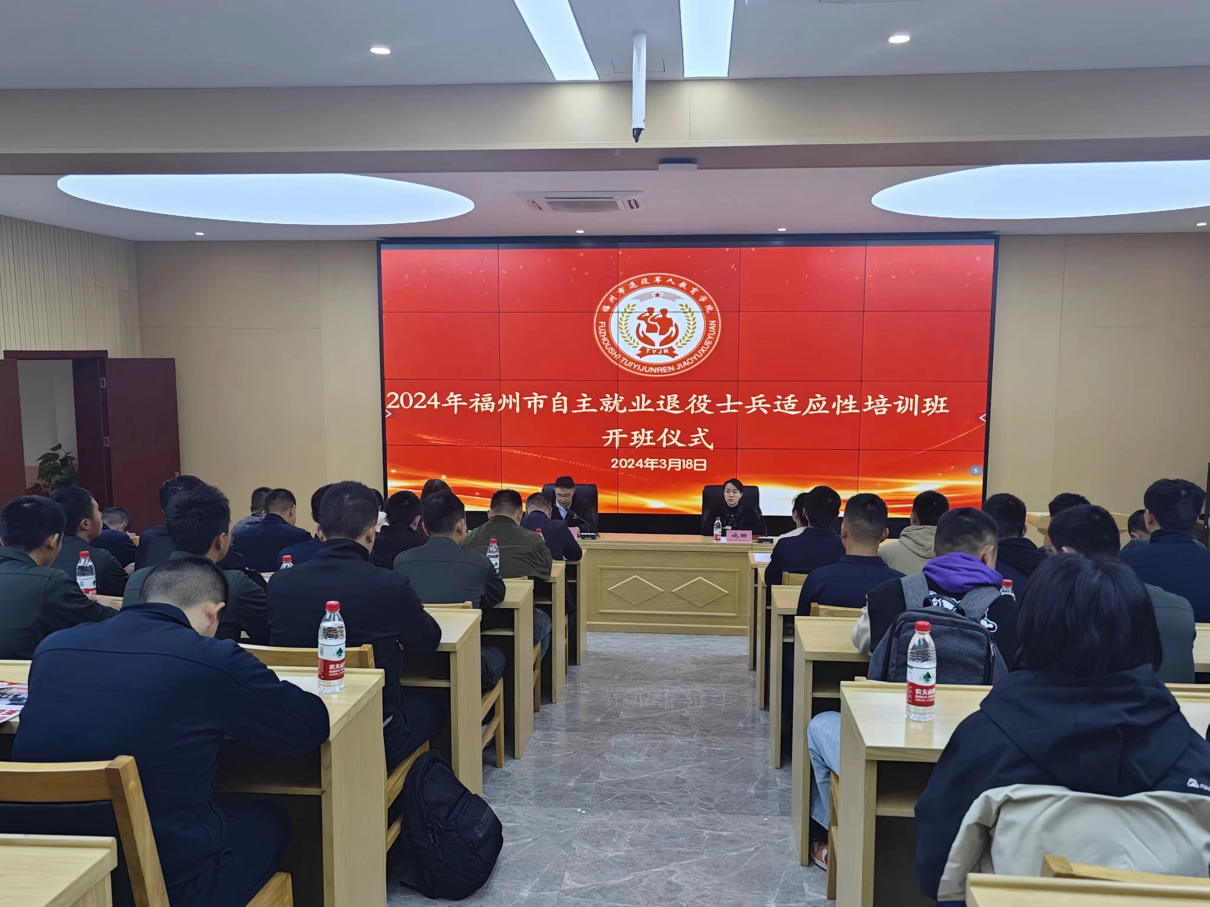 3月18日,2024年福州市自主就業退役士兵適應性培訓班在福州市退役軍人教育學院開班,約100名退役士兵參加開班儀式。