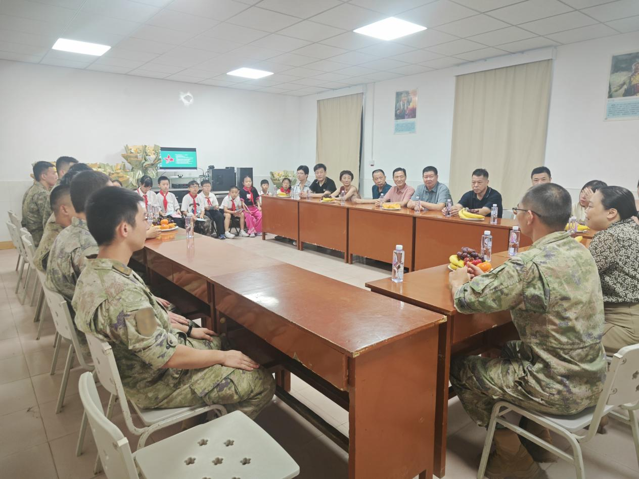 隨后,大家走進接待室。開展了一場“贊老兵 憶往昔”的茶話會 ,退休干部、現役軍人和少先隊員坐在一塊,退休干部向大家講述著自己在部隊時的故事,和對年輕官兵的勉勵。退休干部何方對官兵們說:“當兵的日子有苦有累,但更多的是榮耀和成長。希望你們珍惜現在的好條件,不忘初心、牢記使命,為黨和人民貢獻自己的力量”。這傳遞的不僅是對軍人的敬愛,同時也是對退休老干部的尊崇,展現了軍人精神的血脈傳承。