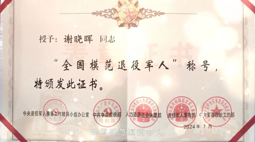 謝曉暉,1977年3月出生,中共黨員,三明市永安消防大隊九級助理工程師,因公致殘被評定為一級殘疾,退休安置到永安市軍隊離休退休干部休養所。2004年,他在一次出警救火過程中,不幸被嚴重燒傷,歷經大手術35次、小手術不計其數,不服輸的他,和“死神”生死纏斗3年后,回歸新生。2017年4月退休后,他又“現身說法”,深入田間地頭,送消防安全知識下鄉,組建“謝曉暉消防宣傳志愿服務隊”,累計入戶宣傳1萬余次,培訓人才超過5萬人,成為農村消防安全的“吹哨人”。2023年3月16日,他受邀參加福建省退役軍人事務廳組織的“學習貫徹二十大精神 激勵老兵永遠跟黨走”巡回宣講活動,多場宣講總計數萬人現場聆聽謝曉暉感人故事。謝曉暉先后被評為“全國最美志愿者”“全國119消防先進個人”“福建省第八屆道德模范” “中國好人榜”“第二屆福建省國防人物”“三明市最美退役軍人”“感動福建十大人物”“全國模范退役軍人”等。