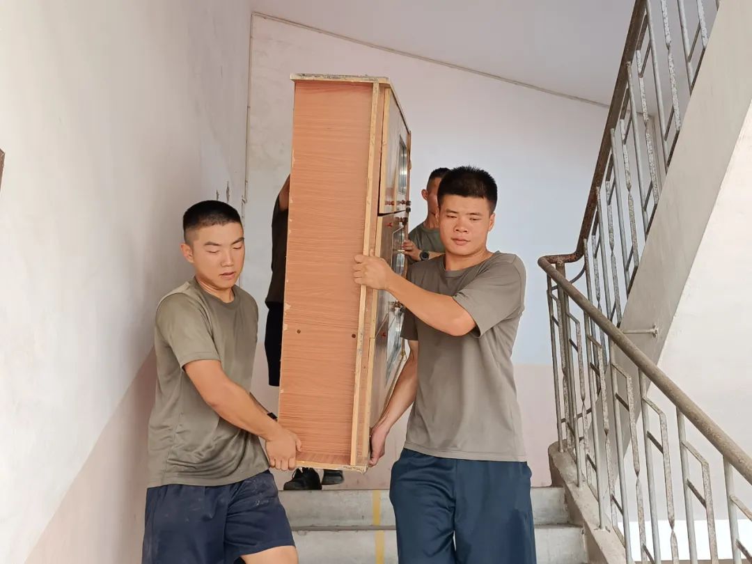 8月17日上午,該駐訓部隊便早早地安排運輸車輛和“精兵強將”來到搬運地點待命。在搬遷現場,需要搬運的物資有課桌椅、貨架、柜子、圖書、實驗儀器、日常辦公用品等30000余套(本),不僅種類豐富,而且數量繁多。面對精而細的搬遷量,部隊官兵們在學校搬遷領導小組的指引下,通過肩扛、手抬等方法,將一套套辦公桌椅、儲物鐵柜、滅火器箱、實驗儀器箱等物品依次裝車運往新校區。 “小心桌角別磕到墻壁!”“前面過樓梯轉角的時候注意一下!”“搬的時候輕一點……”戰士們對所有物品都輕搬輕放,從高樓層搬運到地面,再運送上車;車輛途經3公里的路程,到達邊城中學新校區,戰士們又小心翼翼地卸貨,搬運到學校指定位置。 炎炎烈日下,官兵們大汗淋漓,但沒有一句怨言,只是默默穿梭于各樓層間,偶爾停下來擦擦額頭的汗水,也不顧汗流浹背,繼續來回搬運。 “戰士們,先來吃點早餐吧!”詔安縣邊城中學工作人員為部隊官兵們送來了早餐?!爸x謝,這邊還有一點物資,我們搬完了再吃吧!”就這樣,在完成階段性搬運工作后,戰士們進行了短暫的休息,又繼續投入到搬運工作中。 經過一天的努力,學校需搬運的物資均已運送到新校區指定的位置?!敖裉於嗵澚私夥跑姽俦?,你們辛苦了,謝謝你們的辛勤付出!”沈校長向該部隊領導表示衷心的感謝,并表示今后部隊如果有什么訓練、生活上的需求,學校一定全力支持配合,希望軍地雙方同呼吸,共命運,共同續寫軍民魚水深情。 |