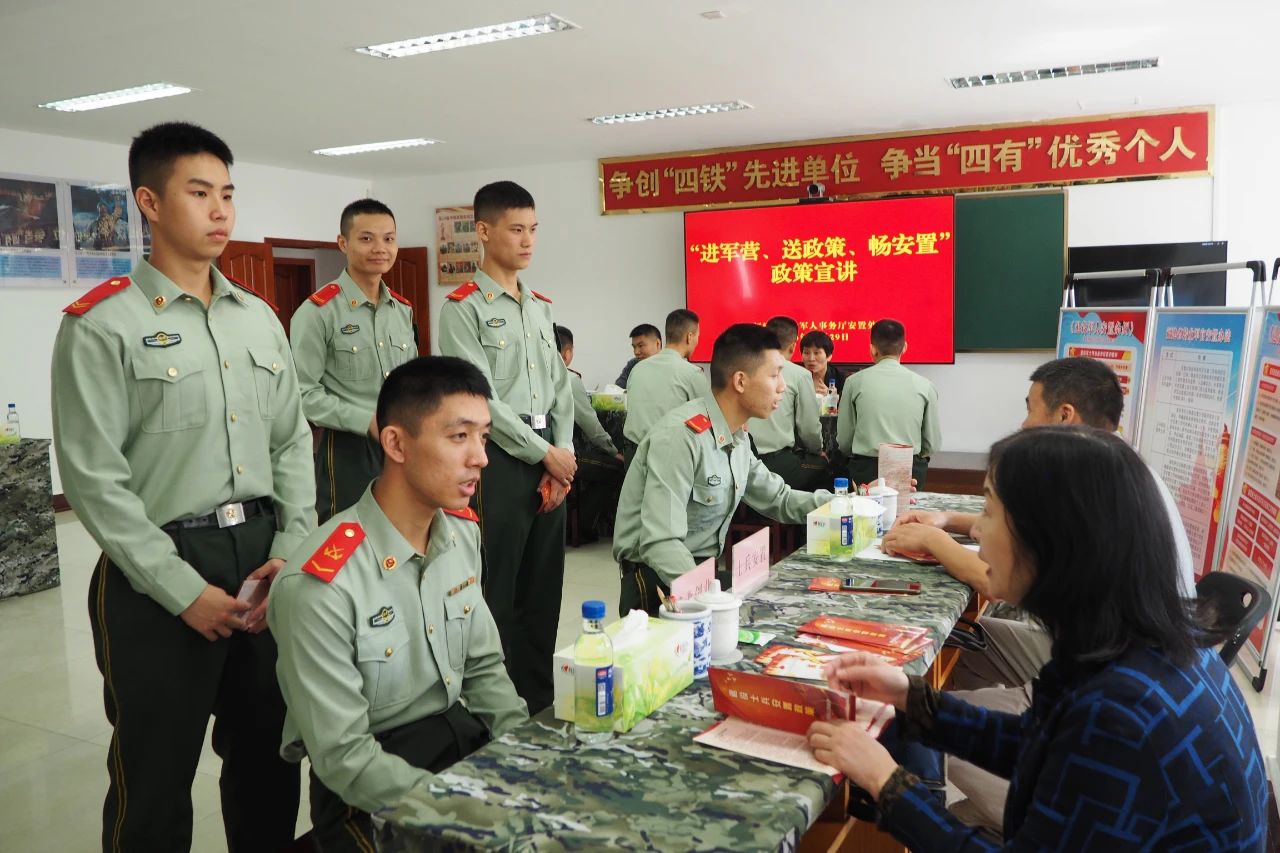 為幫助部隊官兵詳細了解《退役軍人安置條例》,準確掌握退役軍人安置就業政策,近日,省退役軍人事務廳安置就業處、省退役軍人人才開發中心業務骨干走進武警駐閩部隊,開展4場“送政策進軍營”活動。