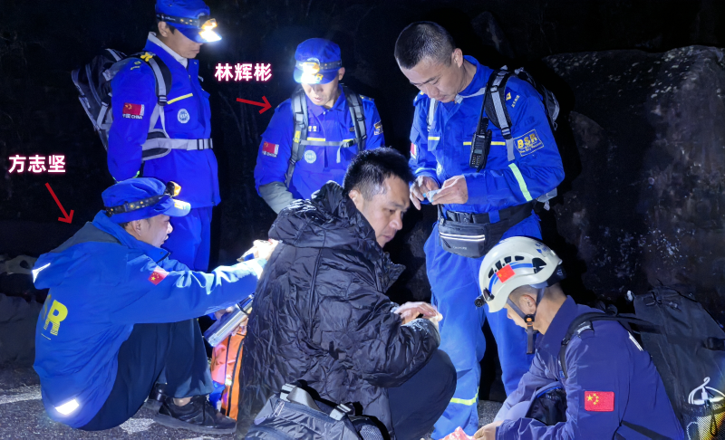 山間寒風刺骨,搜救難度極大,救援人員憑借豐富的經驗和冷靜的判斷,迅速布置搜救方案,兵分多路扎進茫茫夜色中。凌晨3點10分,經過3個多小時的尋找,退役軍人方志堅、林輝彬終于在一山坳的石頭避風處找到兩名失聯游客。他們第一時間詢問兩名游客的身體狀況,運用專業的急救措施為其中一名游客包扎傷口,并提供面包、溫水等補給。