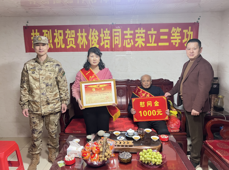 龍文區人武部、區退役軍人事務局為榮立三等功的現役軍人送去立功喜報