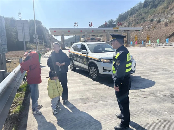接到報警后,執法員迅速趕到現場,設置警示標志,引導后方車輛有序繞行,防止二次事故的發生。同時,執法員耐心地安撫母女三人的情緒,將她們安全轉移至執法車上,協助路勤人員將故障面包車成功拖離隧道,并一路護送母女三人至就近的尤溪中仙收費站。
