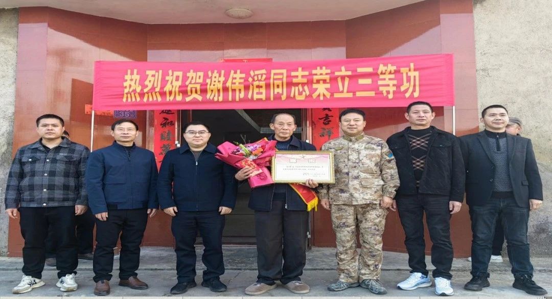 春回大地萬象新,尊崇榮光暖兵心。2月11日上午,龍巖市連城縣委常委、副縣長張開和連城縣人武部政治委員柳軍鋒帶隊,連城縣退役軍人事務局、蓮峰鎮等單位組成送喜報慰問組,為8名榮立三等功(三級表彰)的現役軍人家庭送去喜報。通過隆重的儀式,讓尊崇之光在新春的城鄉間熠熠生輝。