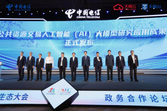 中國電信分享在城市高質量發展的探索實踐 此外,來自國家信息中心、公安部第一研究所、中國信息協會等多家單位的專家共聚論壇,分享經驗,為行業發展提供新的思路與方向。 合作啟新局 中國電信秀硬核成果 大會現場,國家信息中心聯合中國電信等11家單位共同發布“公共資源交易人工智能(AI)大模型研究應用成果”。該成果依托AI算法,實現公共資源交易全流程智能化升級。通過對歷史數據與市場動態的實時分析,精準匹配項目需求與供應商資源,縮短招投標周期。同時,AI全程監控交易流程,確保信息公開透明,有效杜絕人為干預,推動我國公共資源交易進入智能化時代。