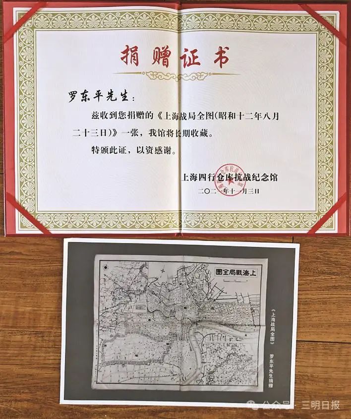 昭和十二年八月二十三日上海戰局全圖 從2018年開始,羅東平的目光鎖定了歷史文獻,他將自己開辦于上海普陀區的工藝品商行交給妻子打理,把大部分的精力用于文獻資料的收集整理,他用歷史的眼光搜集散落在民間的寶貝,立志做一個保護史料的追光者。 為家鄉添一份“歲月珍藏”歷史印記 三明市1958工業記憶館陳列著多件來自羅東平的藏品。去年春節期間,三明市1958工業記憶館館長鄭碧玉專程前往羅東平父母家。在沙縣蓮花新村四樓的小閣樓里,堆放著羅東平從上海寄回來的一箱箱、一扎扎收藏品。鄭館長與她的同事仿佛穿越時光隧道。20世紀30年代至80年代的一段段歷史,就這樣用電影海報、雜志、書籍、學生手冊、各種票據等無聲地呈現在她們眼前。經過近兩個小時的翻看、查找,她們終于找到了需要的物件。一個鐵質的上海糖果盒、一張1958年上海的結婚證書、上海第4任市委書記陳丕顯(福建籍)的有關書籍等。三明與上海的一段深厚情誼,在這些物件中,將那段歷史延展開來。如今,這些實物為進一步講好滬明情緣故事增添了豐富的實物素材。