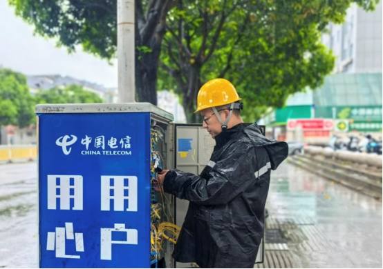 檢測光交箱線路 在福州,臺風對長樂沿海區域影響較大。中國電信長樂分公司線路維護團隊全力開展線路走廊清障、沿海桿路加固及排澇設備檢查。9日下午,接到長樂區鶴上鎮基站信號中斷指令后,搶修團隊攜帶熔接設備冒雨趕赴現場,精準定位故障點,進行光纜熔接和設備調試,通力協作在2小時內成功恢復基站運行。