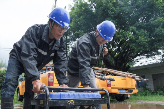 使用發電油機為基站供電 在漳州,中國電信漳州分公司強化應急通信保障,全力迎戰臺風。配置3臺專業無人機、2套KA/KU雙模衛星通信系統和1臺應急衛星通信車,確保暴雨天氣下也能快速開展災情查勘,保障災區通信信號穩定。同時,為應急隊員升級戰臺風裝備,配備可直連衛星通話的智能安全頭盔,集成實時指揮預警、精準軌跡定位、高效對講監控等功能,為現場指揮調度提供全方位數據支撐。