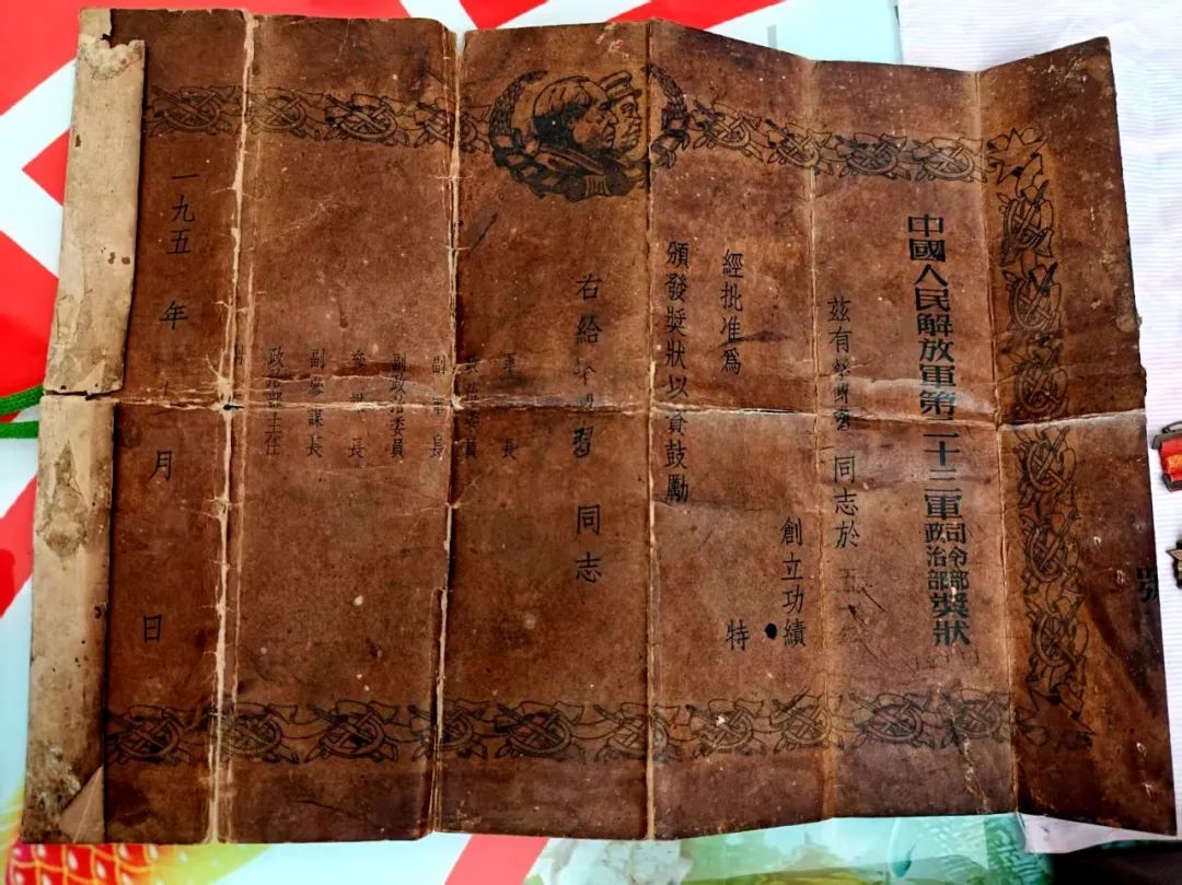 拿到沖鋒號,蔡傳習有些恍惚,仿佛聽到了那穿越時空的軍號聲。 1922年6月出生的蔡傳習是家中的老大?!拔覀兗沂欠N田的,那時候生活苦啊?!辈虃髁暬貞?,1941年,19歲的他被“抽中”參軍,參加了抗日戰爭,“當時是在國民黨的一支部隊里,擔任司號兵,也就是吹號的?!?/p> 那個年代,主要的通訊方式就是司號。號分很多種,戰斗時有沖鋒號、前進號、撤退號,平時有起床號、出操號、收操號。司號員的主要任務就是將每個號音傳遞的信息,及時準確地告訴全體官兵。 “沖鋒號一響,只有前進沒有后退!”蔡傳習說,每當沖鋒時,號兵總是第一時間吹響軍號,及時傳遞指揮部的命令,也能鼓舞士氣,但也因此會成為敵人重點狙擊對象。即便如此,他也從沒想過退縮。 “抗日戰爭勝利后,1946年我加入新四軍,參加了解放戰爭,并在1948年加入了中國共產黨?!辈虃髁暶樕系膫陶f,“1948年打棗莊時我受了傷,子彈從右臉打進,左臉穿出,舌頭短了一截,說話說不清了,也吹不了沖鋒號?!?/p> 幾個月后,傷愈歸隊的蔡傳習放下沖鋒號,拿起長槍,繼續活躍在戰場上,先后參加了渡江戰役和抗美援朝戰爭。 1951年,作戰英勇的蔡傳習被授予“三等功”。這份已經發黃泛黑的紙質獎狀和各種戰役紀念章,他至今珍藏著。