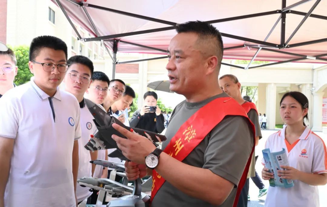 突然,“砰——”的一聲巨響回蕩在空中,瞬間點燃全場氣氛。烈日炎炎,卻絲毫阻擋不了大家的熱情。在軍事體驗區,男女學生們躍躍欲試,輪流肩扛模擬火箭筒進行發射體驗。緊接著,伴隨一陣“嗒嗒嗒”的模擬槍聲,一只機器狗穩健地走入人群,靈活演示多種戰術動作,立刻成為全場焦點。同學們紛紛好奇地圍上前去,伸手觸摸機器狗的“手”和“腳”,感受科技賦能國防的獨特魅力。 “我剛才模擬了中國軍人打槍的環境,我拿了95式步槍,我覺得它很重,我體會到了軍人的艱辛與不易。作為一名新時代青少年,我應該認真學習,扛起新時代國家的重任?!备咭恍聦W黃靖航感慨道。