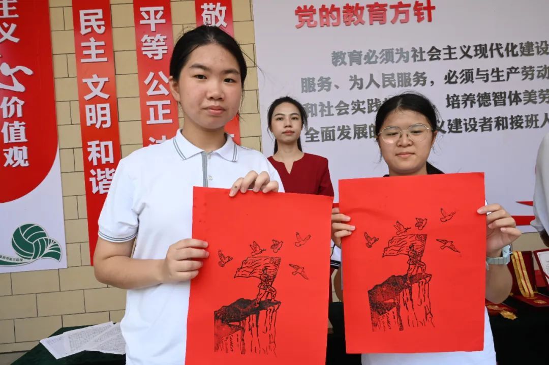 特別設置的抗戰主題木版年畫拓印體驗,由省級非遺傳承人現場教學,同學們親手拓印,在一刷一印間將抗戰歷史與傳統文化深深烙印在心中。
