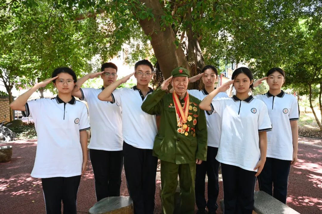 臨別時,老人緊緊握住他們的手,反復叮囑:“你們要珍惜現在的好時光,好好學習,將來成為國家的棟梁!”榕樹下,學生與老兵用軍禮向革命前輩們致敬。 這場相隔八十年的對話,不僅是記憶的傳遞,更是一次精神的交接。年輕的目光與滄桑的眼神在此相遇,他們彼此致意,也彼此照亮。