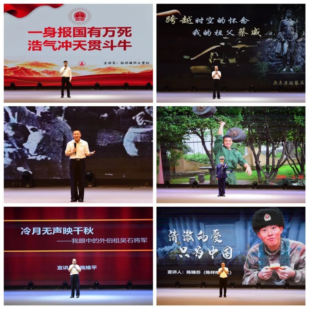 “烈士親友講烈士故事”宣講會上,龍巖學院的師生共同見證“烈士親友講烈士故事”主題歌《講你的故事》正式向公眾發布。學生們的傾情朗誦和青年歌唱家付帥的深情演唱,感染激勵了在場的每一位觀眾。隨后,林祥謙烈士曾孫林樹坦、蔡威烈士孫子蔡述波、吳石烈士外侄孫施維平、陳祥榕烈士堂伯陳臻蘇、陳炳壽烈士孫子陳文云、鄭忠華烈士戰友莊志樹等六位宣講員,先后飽含深情地講述了英烈們的感人故事。由龍巖市退役軍人事務局選送、市山歌劇傳習中心演繹的英烈情景劇《祁連山上杜鵑開》,再現了閩西長征女杰吳富蓮烈士舍生取義斗頑敵的悲壯情景,為師生上了一堂生動的英烈主題思政課。
